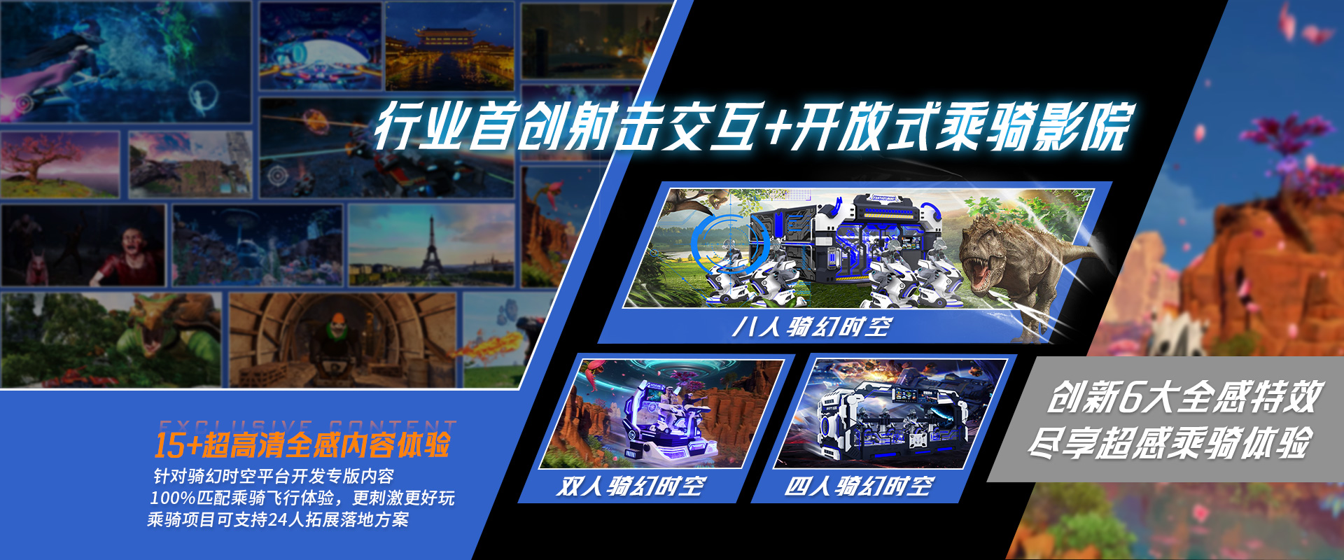 公司現(xiàn)已擁有知名“穿越時(shí)空(VART)”VR品牌完整產(chǎn)品線(xiàn),主推VR元宇宙主題樂(lè)園,XR研學(xué)基地、LBE大空間定制、5D/7D/軌道/球幕影院/乘騎等定制項(xiàng)目方案。