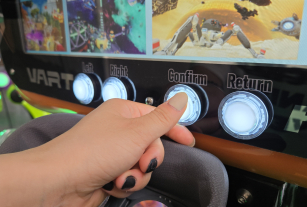 1、手持式VR頭盔,只需雙手握住把手,并將臉靠近頭盔即可開始體驗(yàn)。